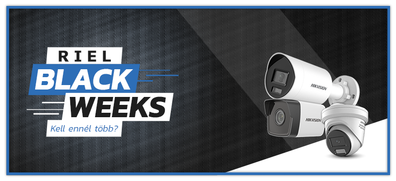 A RIEL Black Weeks időszak alatt válogatott biztonságtechnikai termékeket érhetsz el kedvezőbb áron – kamerákat, rögzítőket, kaputelefonokat, AX Pro és beléptető megoldásokat is. Érdemes időben beszerezni a szükséges eszközöket az év végi projektekhez.